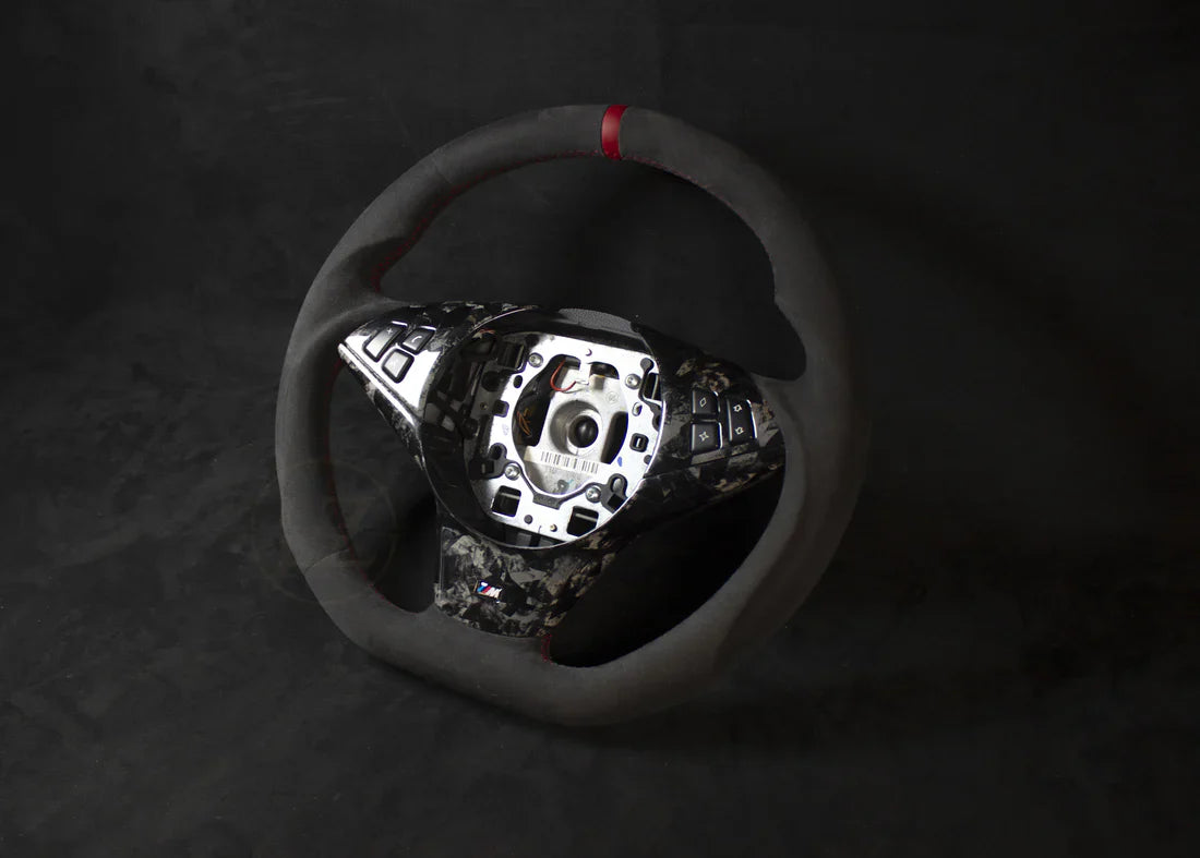 BMW E60, E61 ALCANTARA RATT ROUGE Détails Forgé Carbon