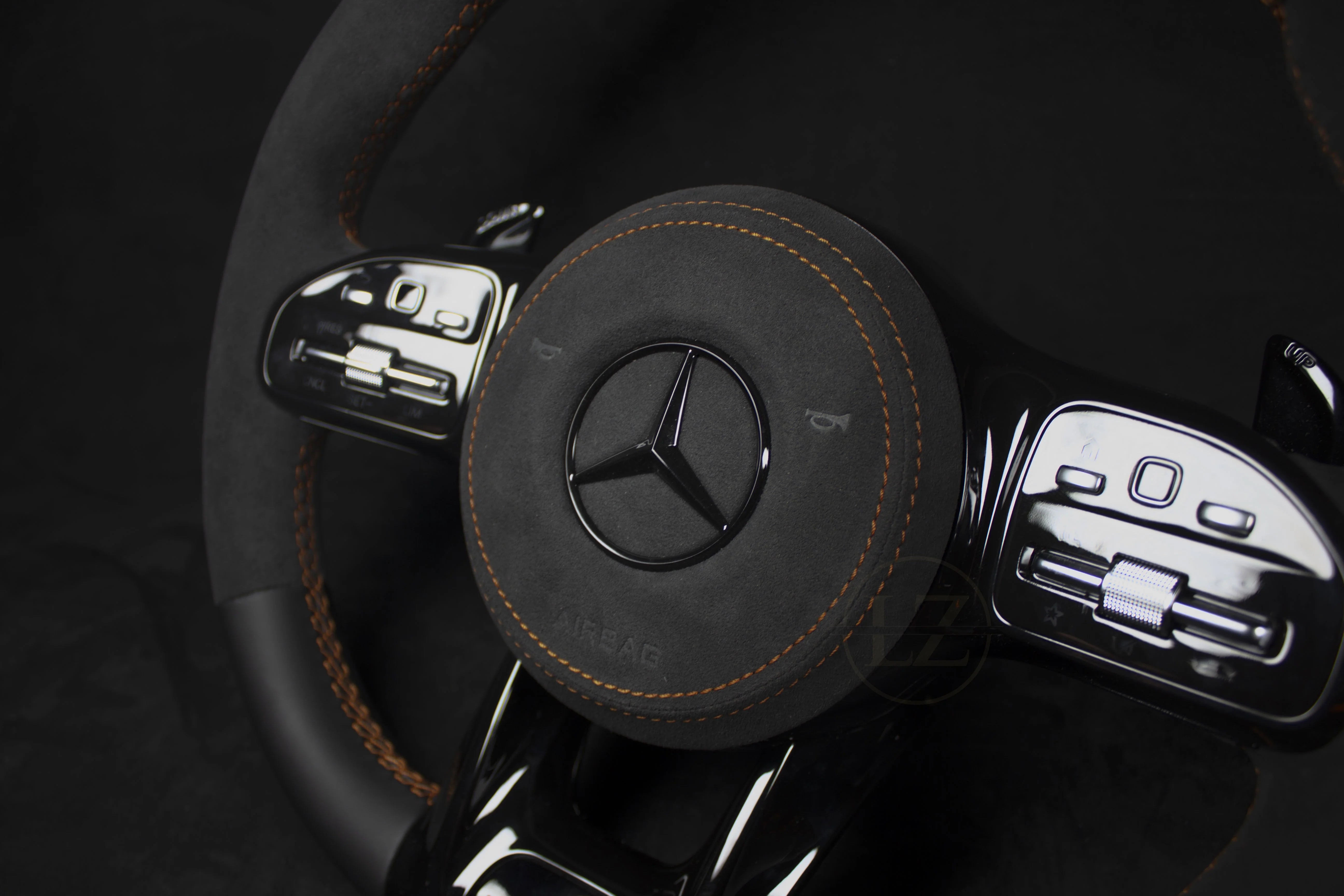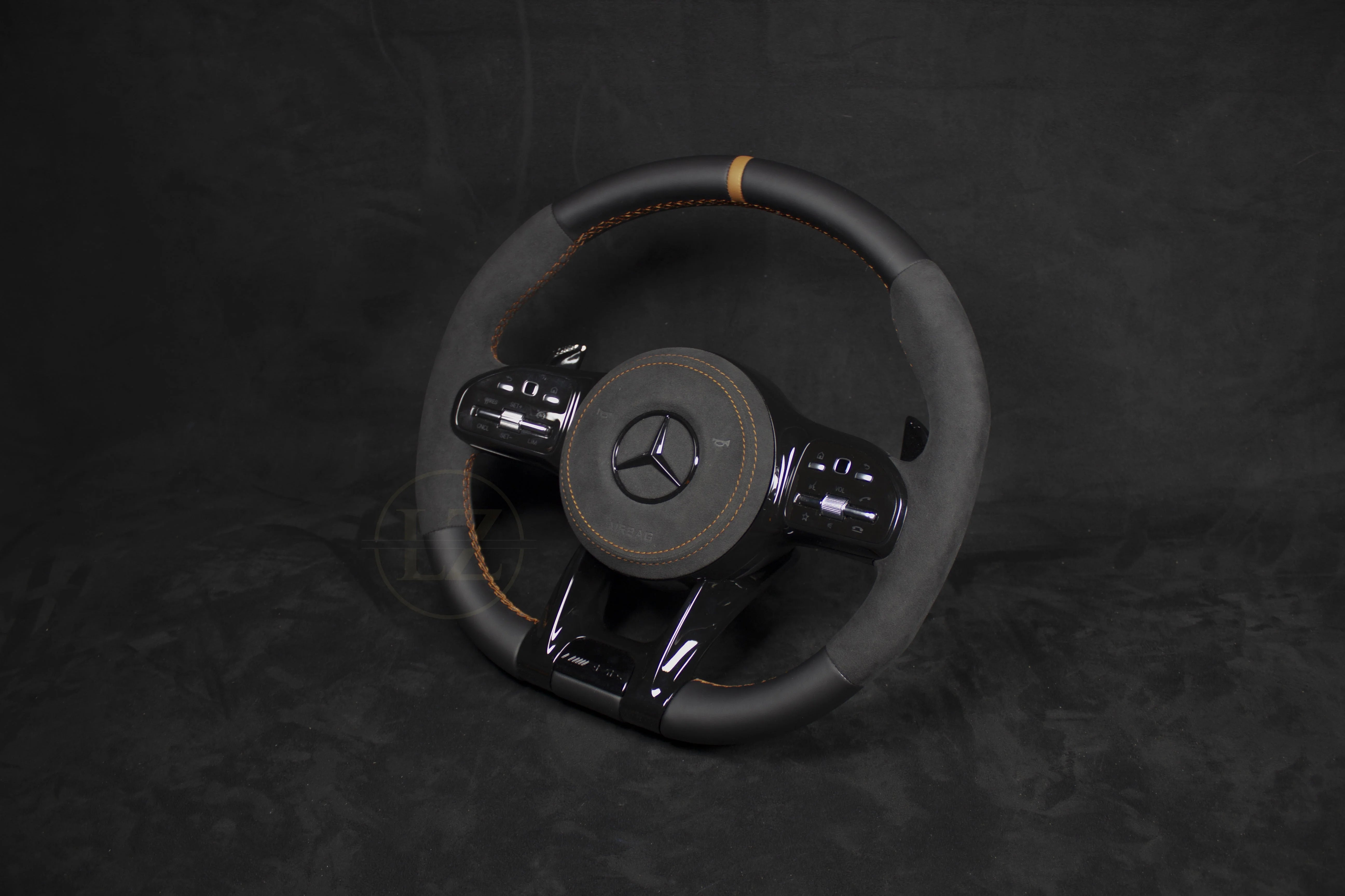 Volant Mercedes-Benz C63 AMG / G-Class – Alcantara & Cuir Noir – Détails Marron | LZ Performance