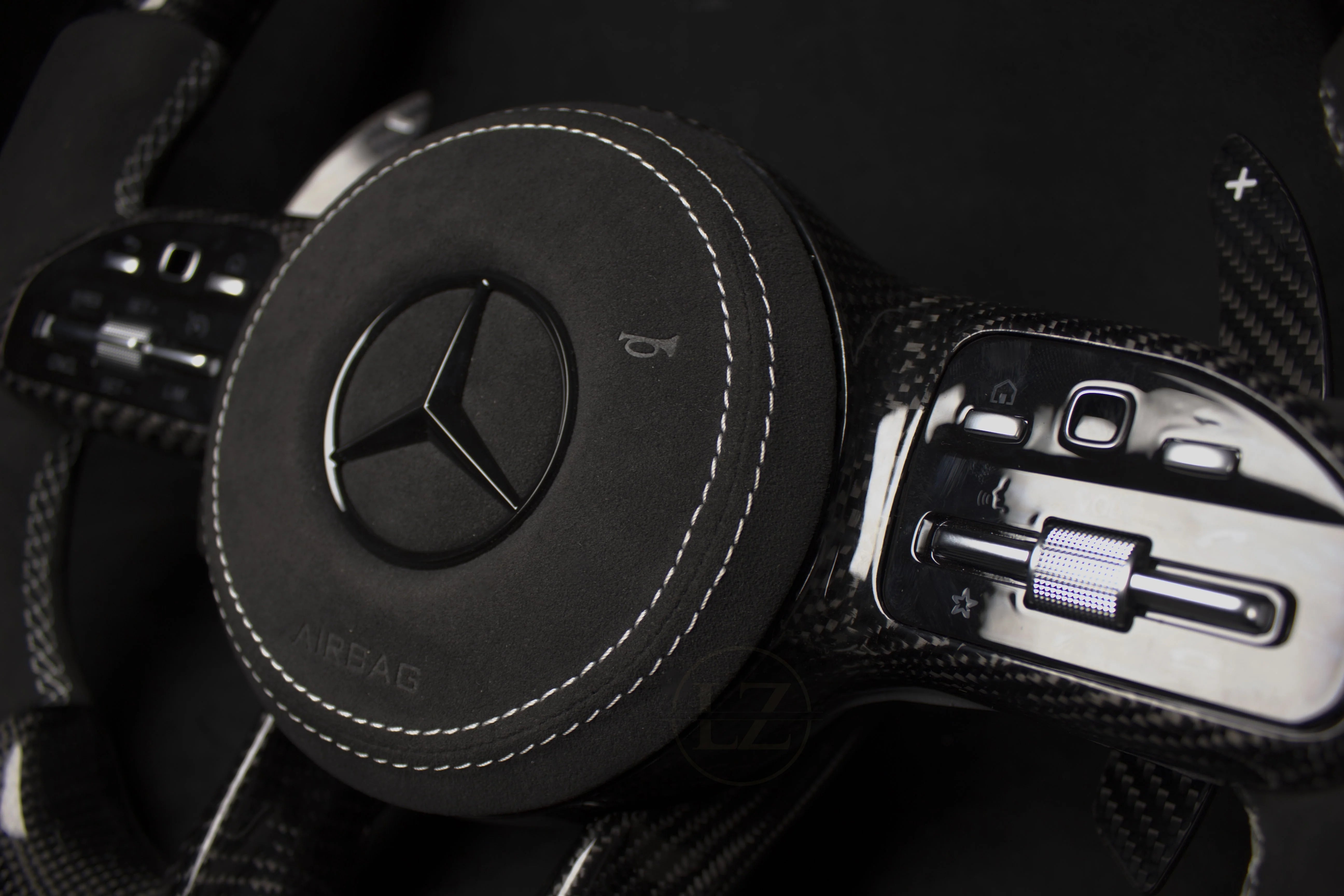 Volant Mercedes-Benz C63 AMG / G-Class – Carbone & Alcantara LED – Détails Blancs | LZ Performance