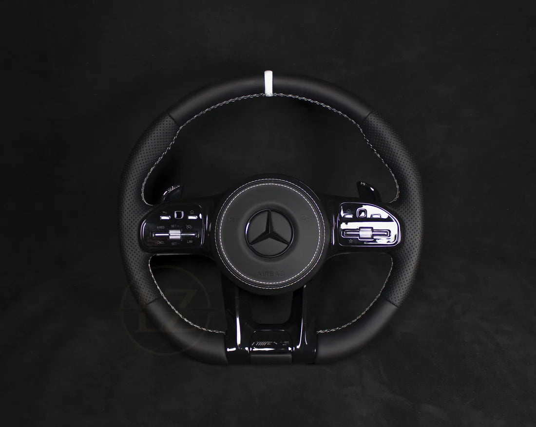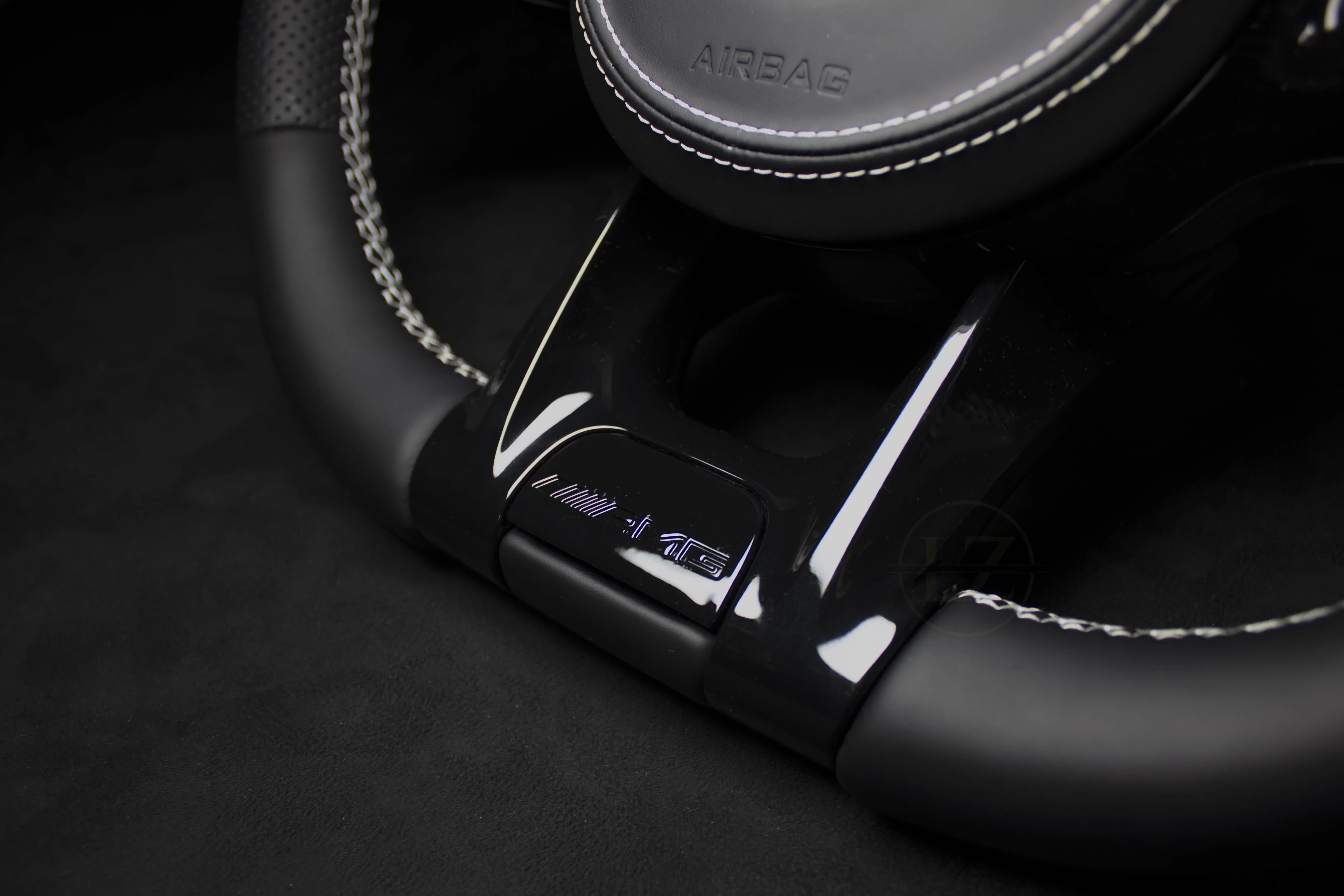 Volant Mercedes-Benz C63 AMG / G-Class – Cuir Noir Premium – Détails Blancs | LZ Performance